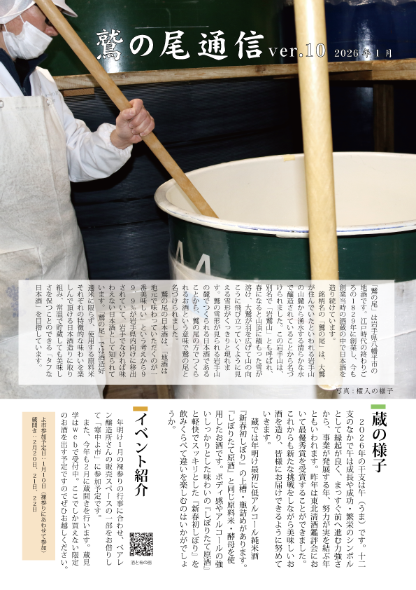 今年も鷲の尾をどうぞよろしくお願いいたします。